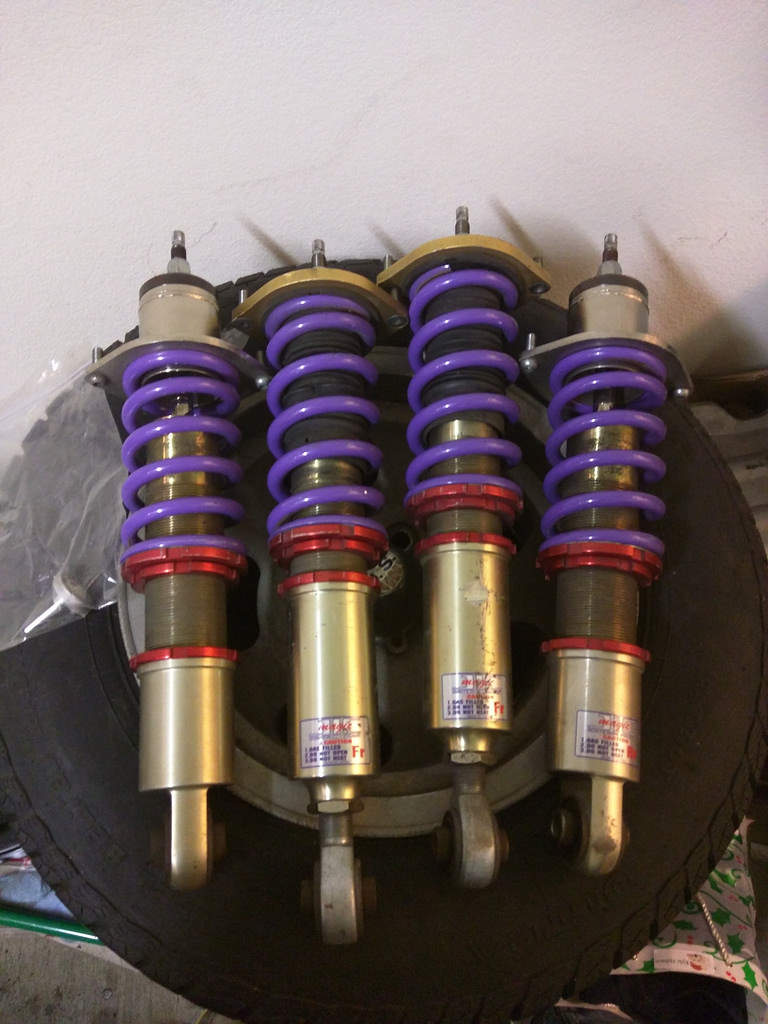 I bought these from Curly a while back and never installed them. I have the tool to adjust the dampers, how ever I do not have the JIC spanners to adjust the height and such, but Curly said he used a generic spanner and some pliers with success. If I remember correctly they are 9k front and 8k rear springs