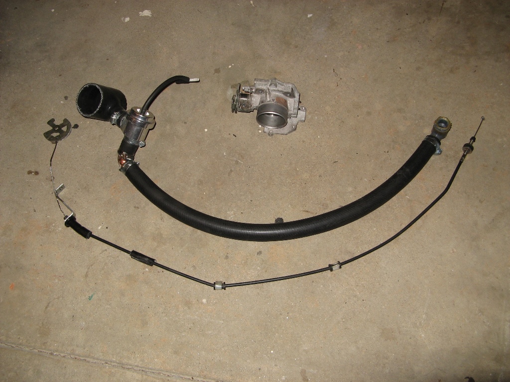 I used another throttle pulley put on backwards on the intake throttle. That makes 2 pulleys on the intake throttle body. This places it at the correct angle to get both TBs to open and close at the same time. (don't have a picture, but can explain it to you)