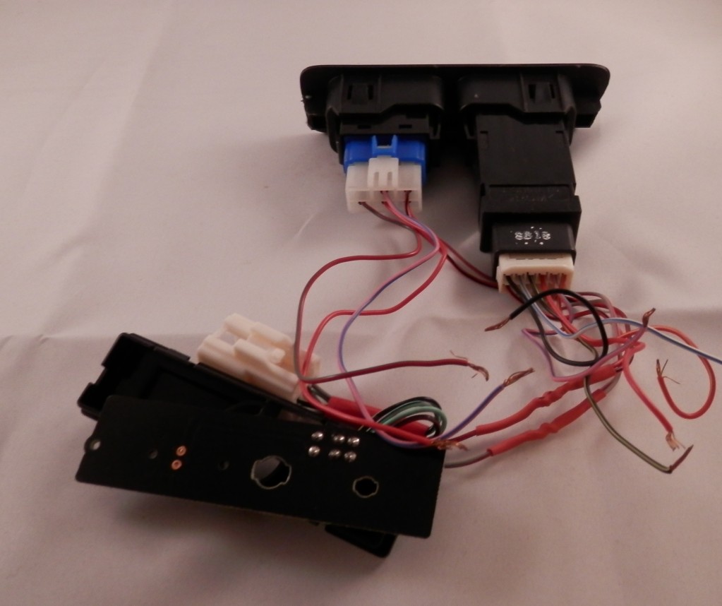 Air bag switch panel from Europe. This replaces the US Miata air bag switch panel with a nice set of switches. Includes new fog light switch and good used heated seat (double) switch. Connectors included for both switches. The heated seat switches are on/off, so could be used for most anything. Also included is a US airbag switch that I started to modify to use one of the heated seat switches to switch the airbag on and off, but could be used for power, lights or to hardwire the airbag to always be on. $60 including postage (in USA) takes it all.