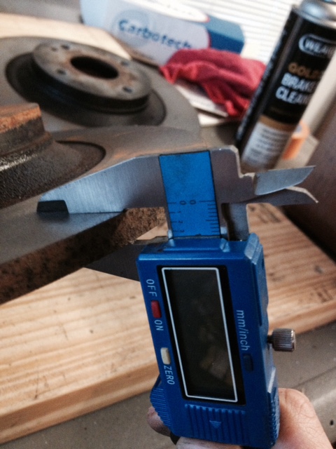 The battery in my digital micrometer died, but you can clearly see there is plenty of meat left on all the rotors. If anyone waits actual measurements, I can go get a battery and get them to you.