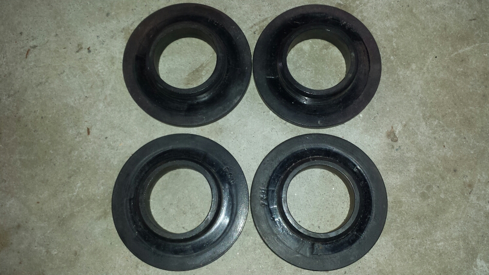 Set of four FCM spring isolators. Adds about 1/4" to spring height. Works great as spring locators with NB hats. $50 obo shipped to lower 48.