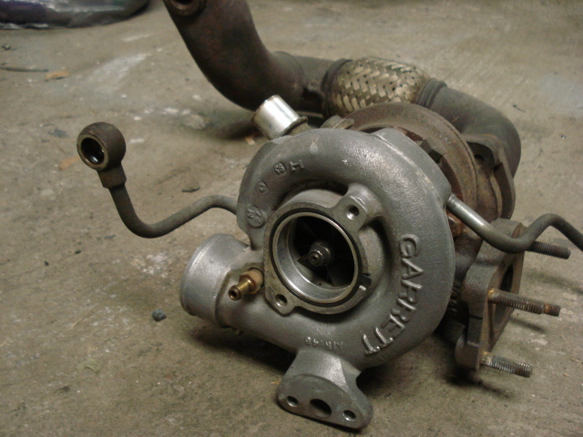 low mileage T25 garrett turbo. The wastegate has a small dent/puncture in it and i was going external and was going to weld the flange shut so i didnt care.. I can throw it in if you want to fix it. Complete with downpipe section and all oil lines. no shaft play.