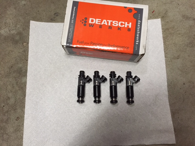 chili charger -- 550cc injectors, I think deuschworks brand but I'm not sure. For some reason I thought they were 750cc... But the FM website says 550.