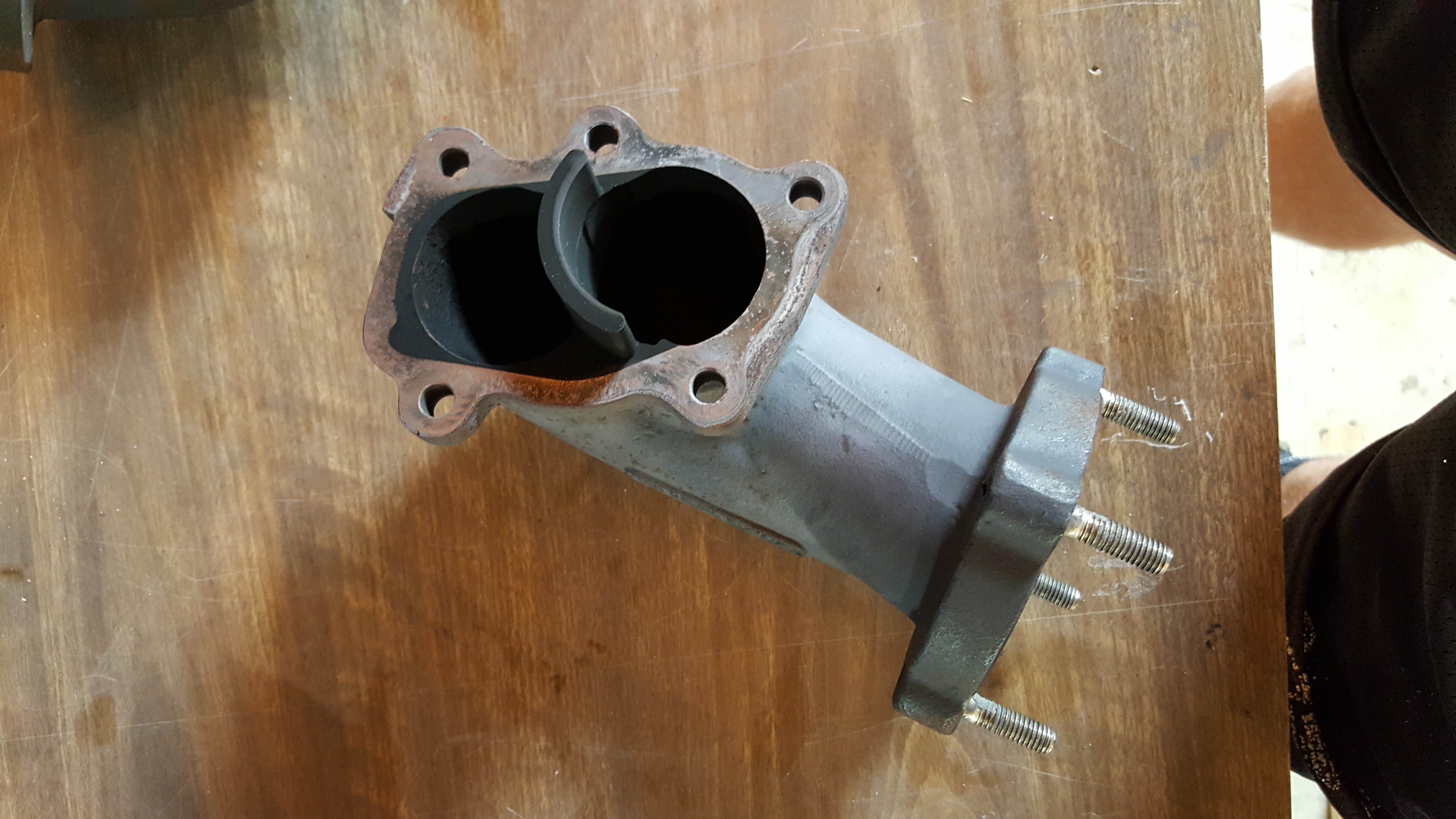 FM cast turbine outlet with separated gases 2.5". (5 stud garrett pattern)