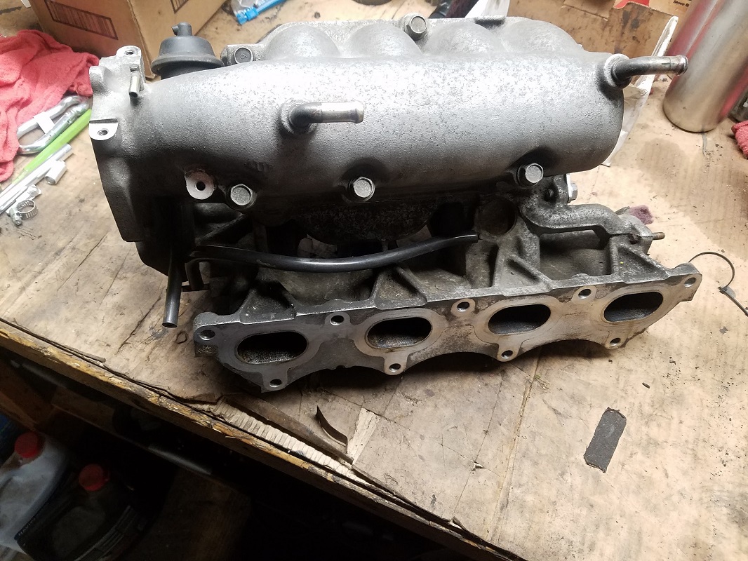 NB1 intake manifold, broken nipples for VICS actuator and solenoid, i bought it this way with my head, replaced with skunk2. I took the upper half off and thoroughly cleaned it and installed a fresh gasket. I don't think i have a throttle body for it, but i might. EGR block of plate. ---sold---