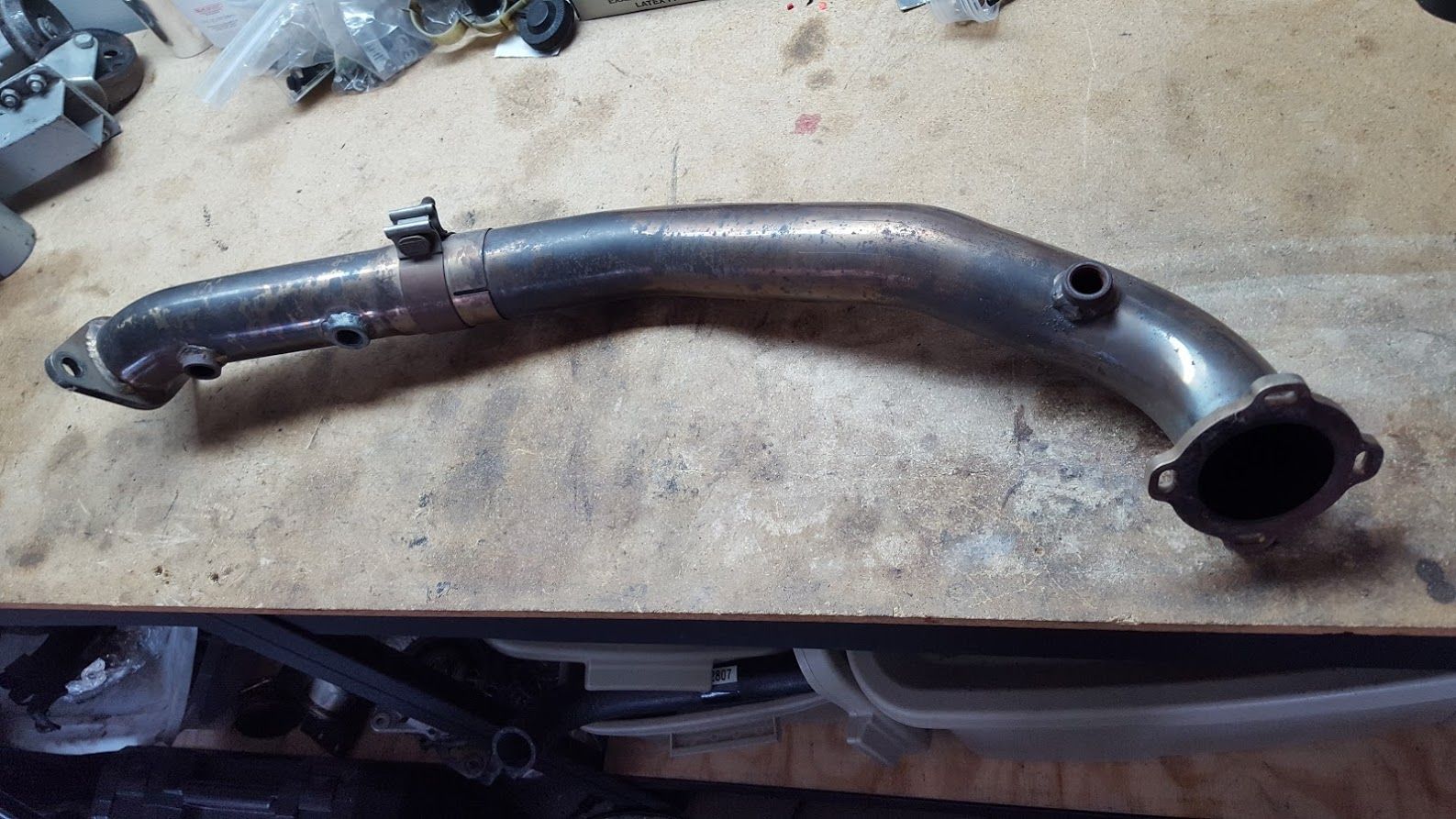 Tial Q was never used and has the aluminum and stainless weld on fittings, plus a stainless pipe already to just use as is.