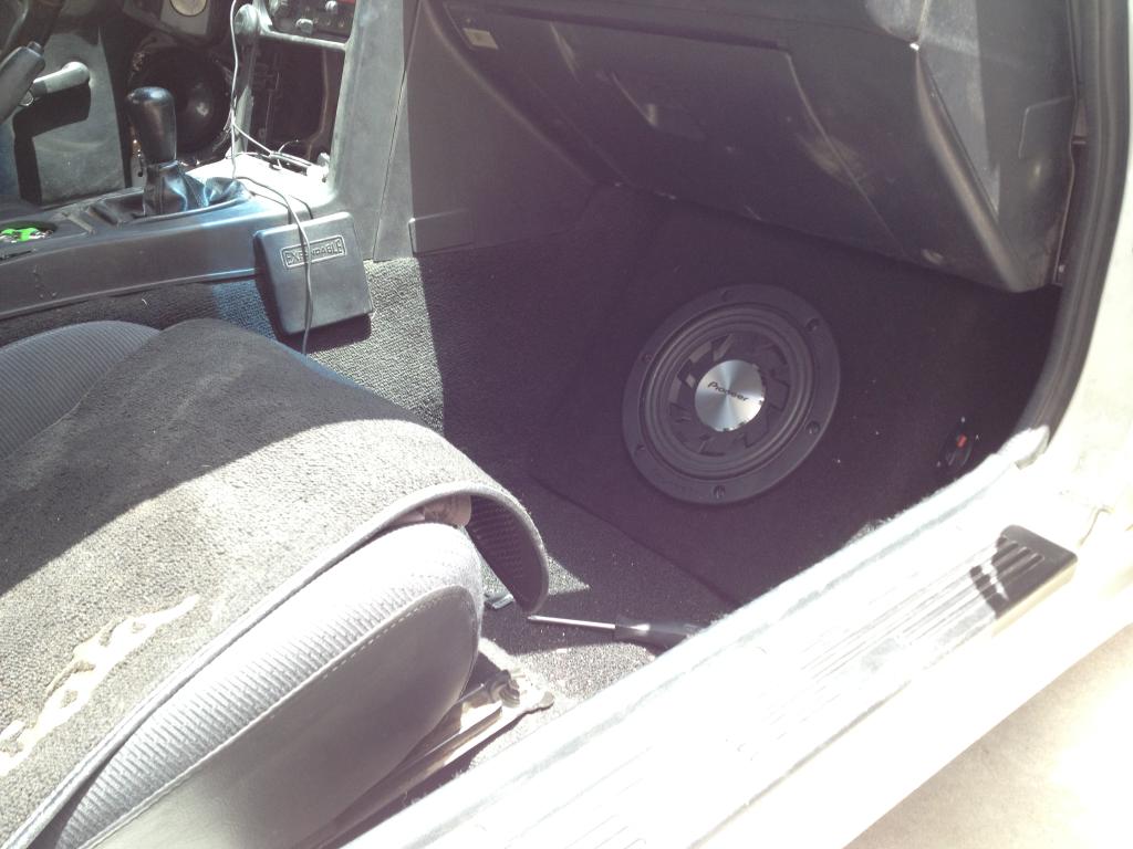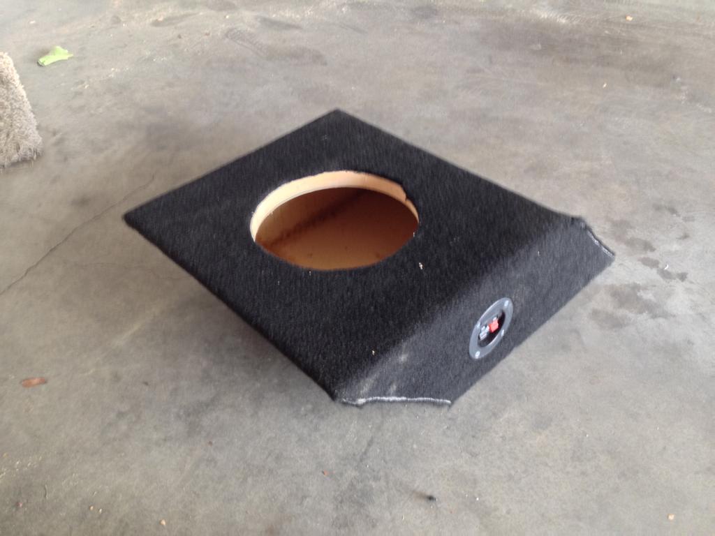 I made one but the sub faces the front of the car or under dash area . I feel this is the best method to hear the bass frequency. Pointed out like your picture does not sound as well. The foot well sub box location is the best place to mount a subwoofer in a miata to get the best bass sound with top down. I have tried all other methods and nothing is better then foot well box. Anyways your box looks good. GlWS.