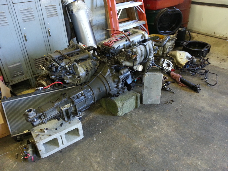 Accomplished some more today... Just finished pulling the motor, and stripped all of the wiring harness off of the new motor. Just need to swap the 5spd over to the new motor, and swap the iac valve form the old motor onto the new motor (New motor came with a broken one). Hoping to have the motor back in by next Saturday morning! Can't wait to have it out of my hair lol