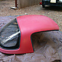 Hard top. pictures don't do it justice. This is in good condition, better than a lot out there, just needs paint on the outside.