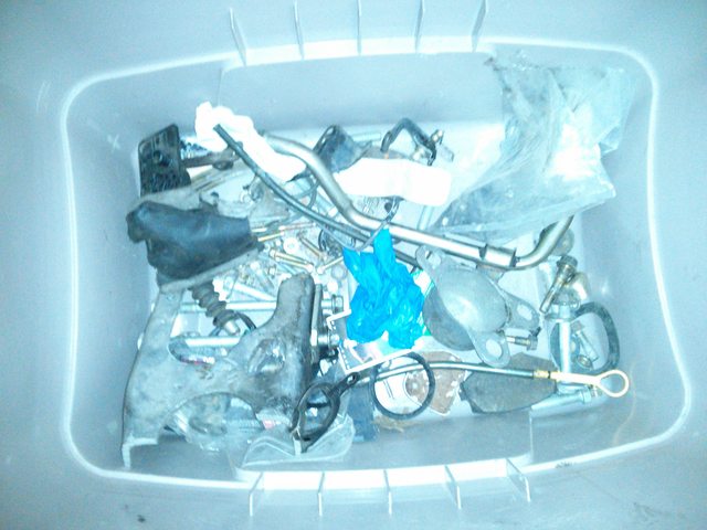 new rear seal, new turret gasket, new shift seal, new pilot bearing. comes with ****, torn upper boot, and metal engine plate thing