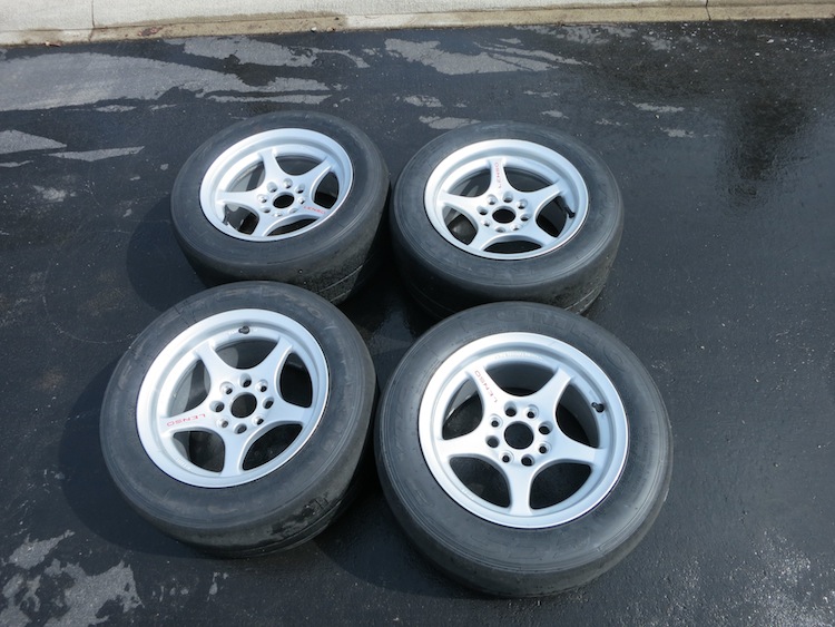Wrapped in 215/50/13 Kumho V710s used for four local AutoX events in 2012, not used last year at all. Stored in tyre bags in my condo storage locker (2nd floor basement and 99% dark).