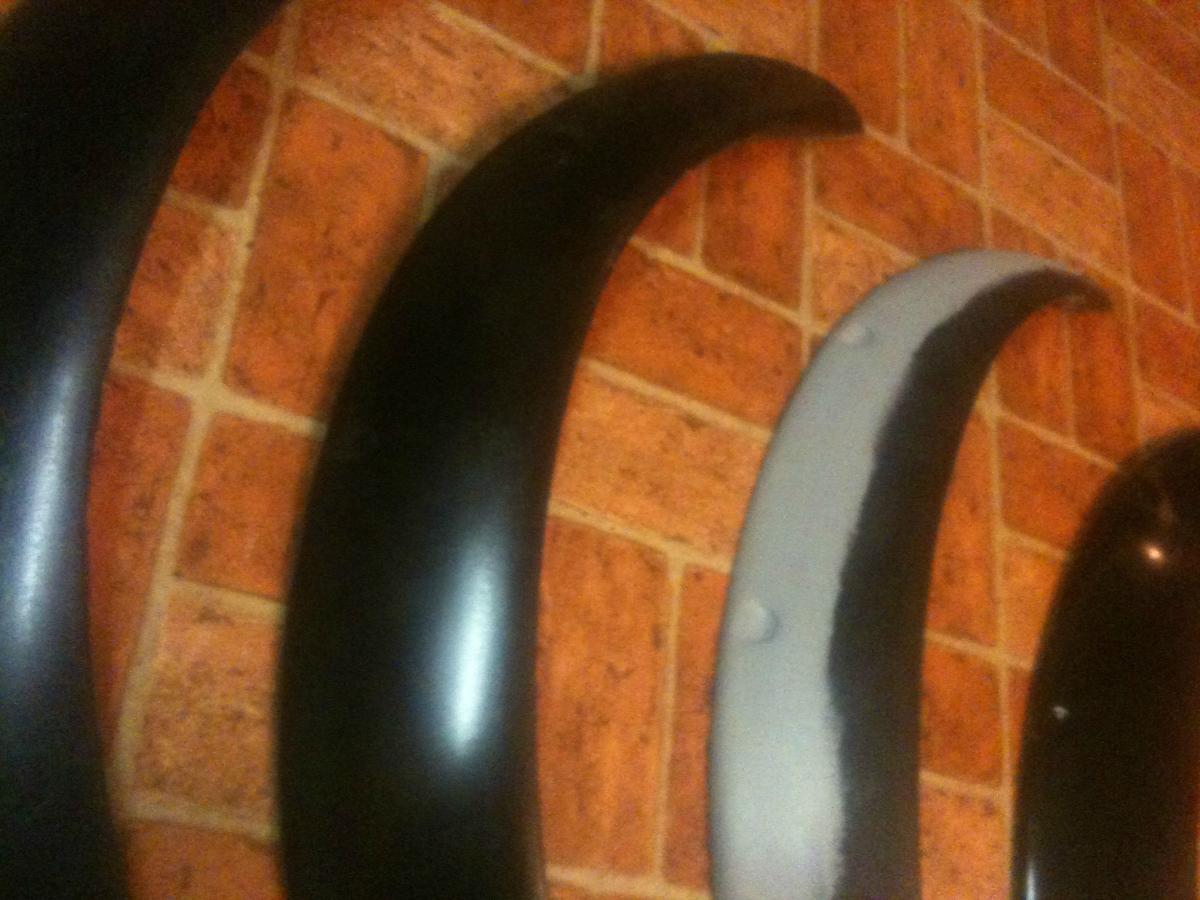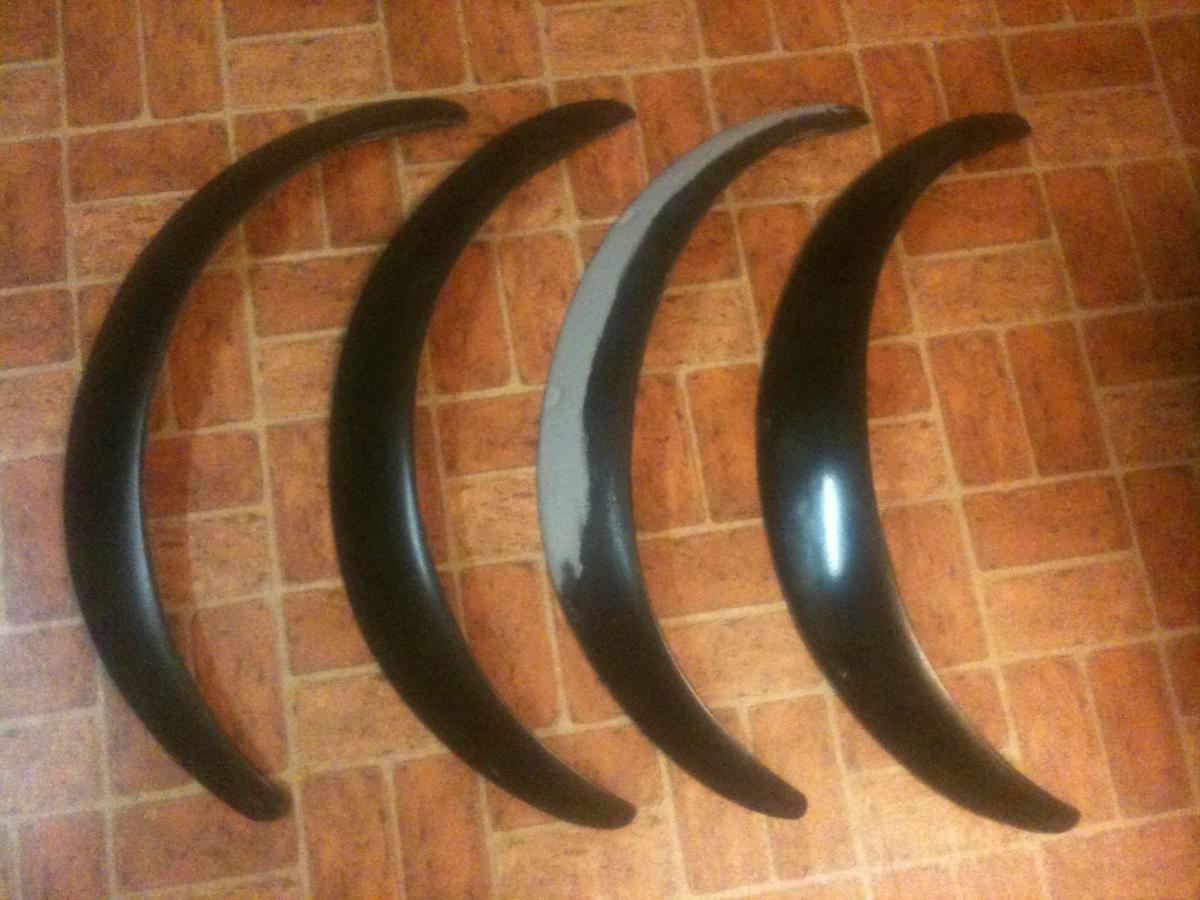 Hi all, I have a set of AK V2 fiberglass flares for sale. These are for an NA miata. These are legitimate Autokonexion flares, as you can see from the label in the pics. There is some primer on one of the flares, it's where the guy who sold these to me started to prep the flares. I think it's a plus as the fiberglass definitely needs a bit of sanding and priming before paint... Other than that, these are brand new. No holes drilled or anything, perfect shape. I didn't even mock these up before I lost the guts to chop up my miata.