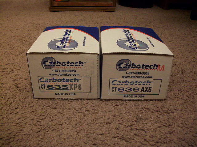 I'm selling a set of Carbotech brake pads that will fit 94-02 Mazda Miatas without the sport brake package. Included is a full set (4) of Carbotech XP8 pads for the front and a full set (4) of Carbotech AX6 pads for the rear.