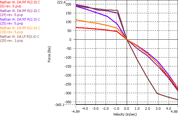 I had these custom valved by FCM (not his normal valving) about 4 years ago. Springs on there are 700/425 (or I can switch fronts back to 600 original). Shock bodies have been shortened and has helper springs. External canisters with compression *****, rebound is in the shaft.