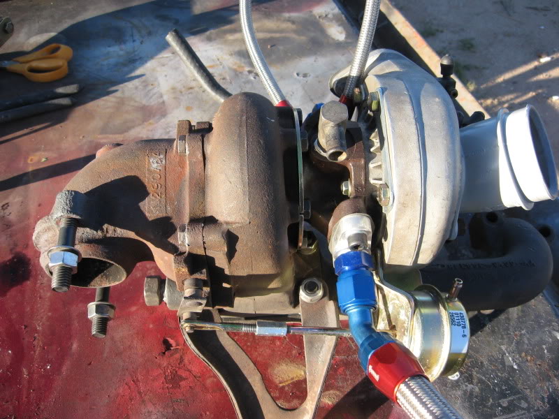 I bought it rebuilt a few years ago to use on my turbo Ranger. Turbo was rebuilt by a very reputable builder in New York. Not some backyard/shadetree mechanic. You can clearly see the machining work. Bolts have antiseize on them, hoses are summit where you see them. Wastegate actuator is adjustable from as low as 5lb if I remember correctly. This could be the friggen ticket for KA-T build or much bigger if needed.