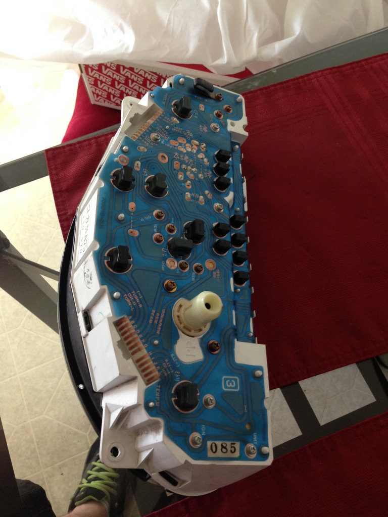 cluster is in perfect working order, color of the bulb is OEM without the little green condom thing.