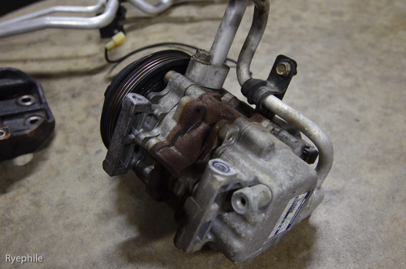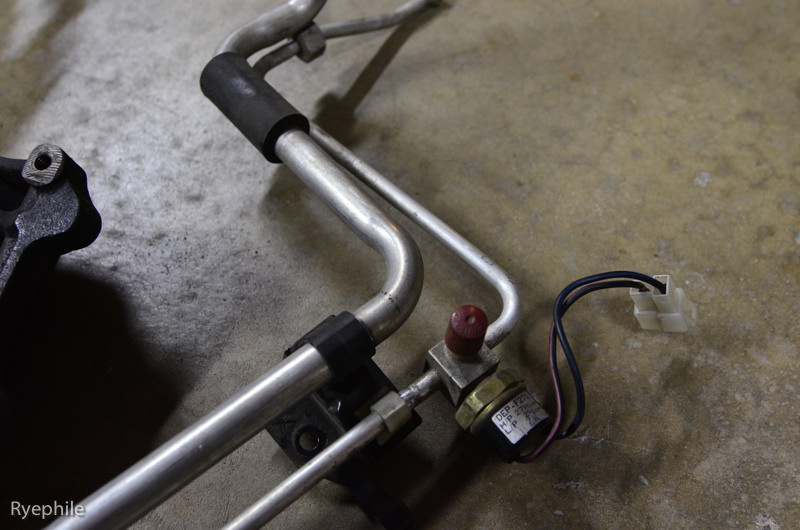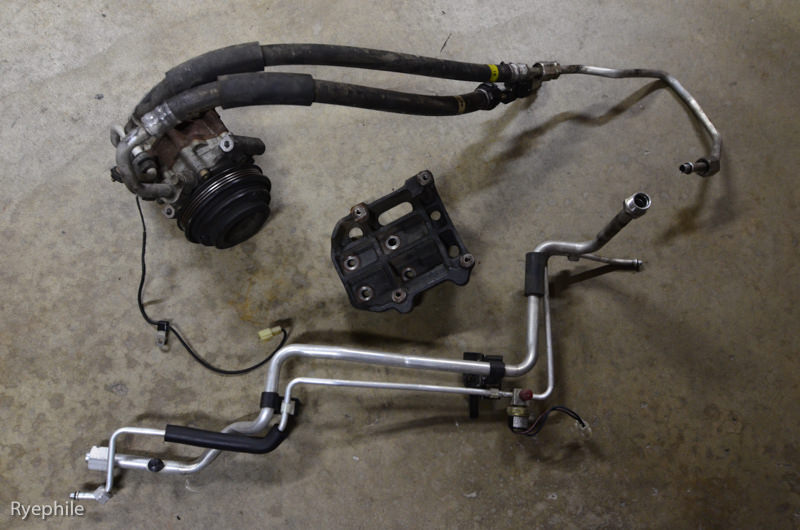 Air conditioner compressor and hard lines. **I'll also throw in the evaporator that goes in the interior between the blower motor and center console stack** Worked fine when removed, though the system as a whole needed a recharge. Compressor clutch seems to work perfect. Includes pressure sensor and engine block mounting bracket. $100 shipped