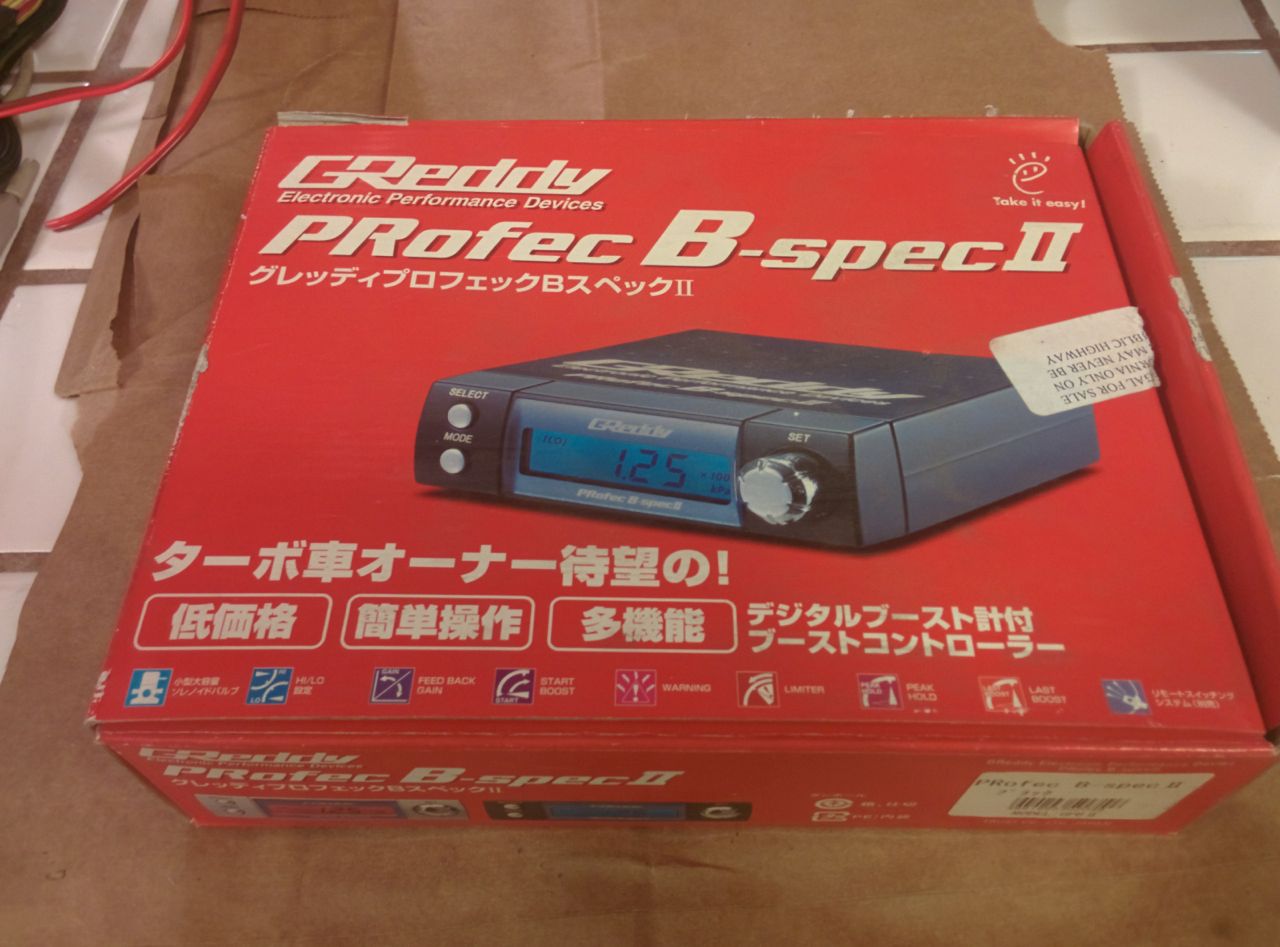 GReddy Profec B Spec 2 boost controller. This is a standalone boost controller (because the Hydra's EBC sucks), it's pretty straightforward to tune and works very well indeed. With my built motor and 2560, boost would rise to the target point and then stay plus or minus 5 kpa until redline. Asking $250: