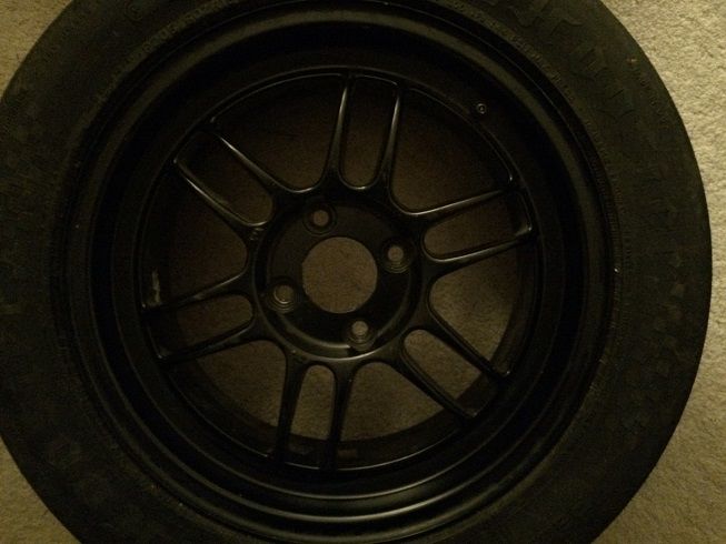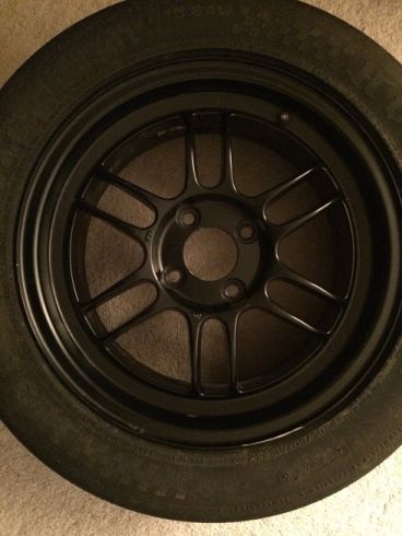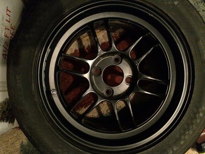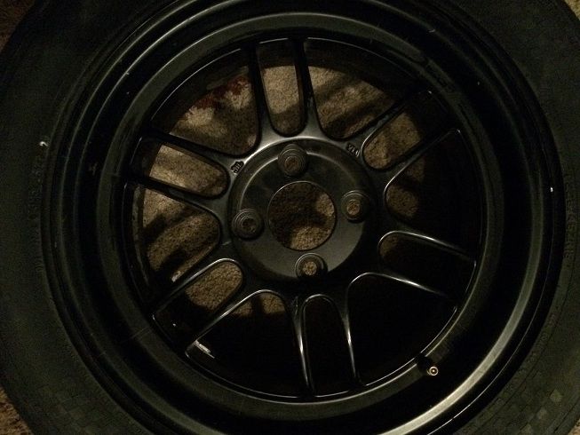 Enkei's are black. If you look closely on two of them, they have some small cosmetic blemishes. Wheels and tires are being kept in the bedroom for maximum woman satisfaction.