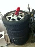 Stock 14" wheels with Falken Azenias mounted and balanced. About 50% life left on the tires. Wheels are in good shape, only some minor rash 2 of them. $300