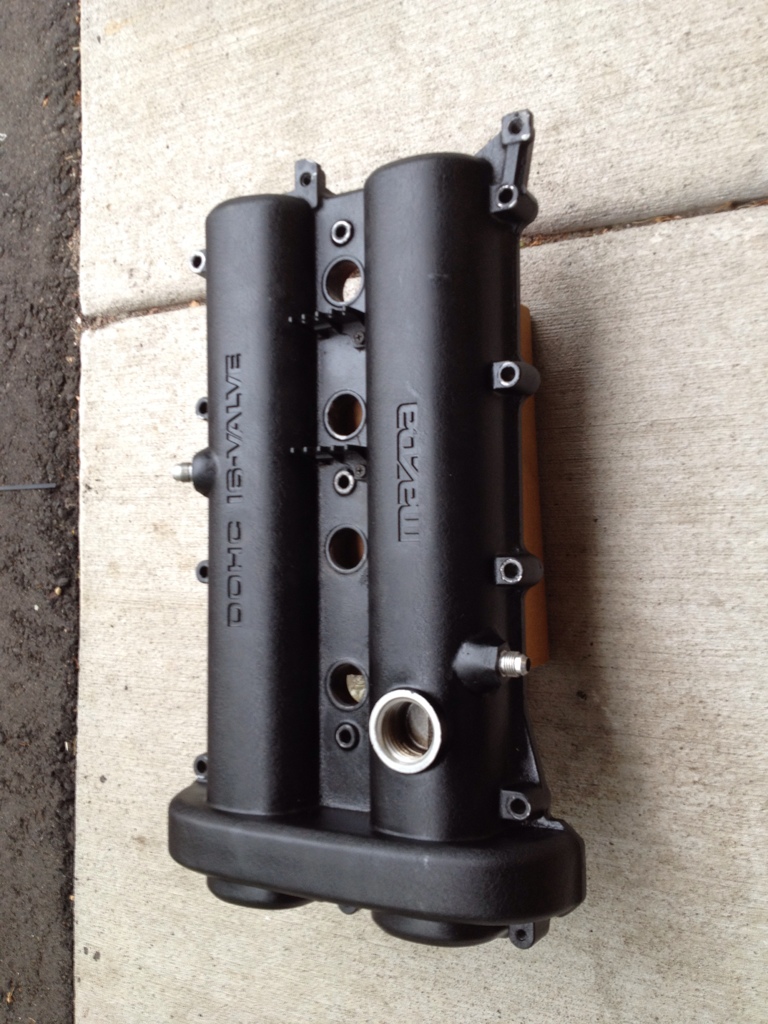 1.6 Wrinkle black powder coated valve cover. Has AN fittings welded on.