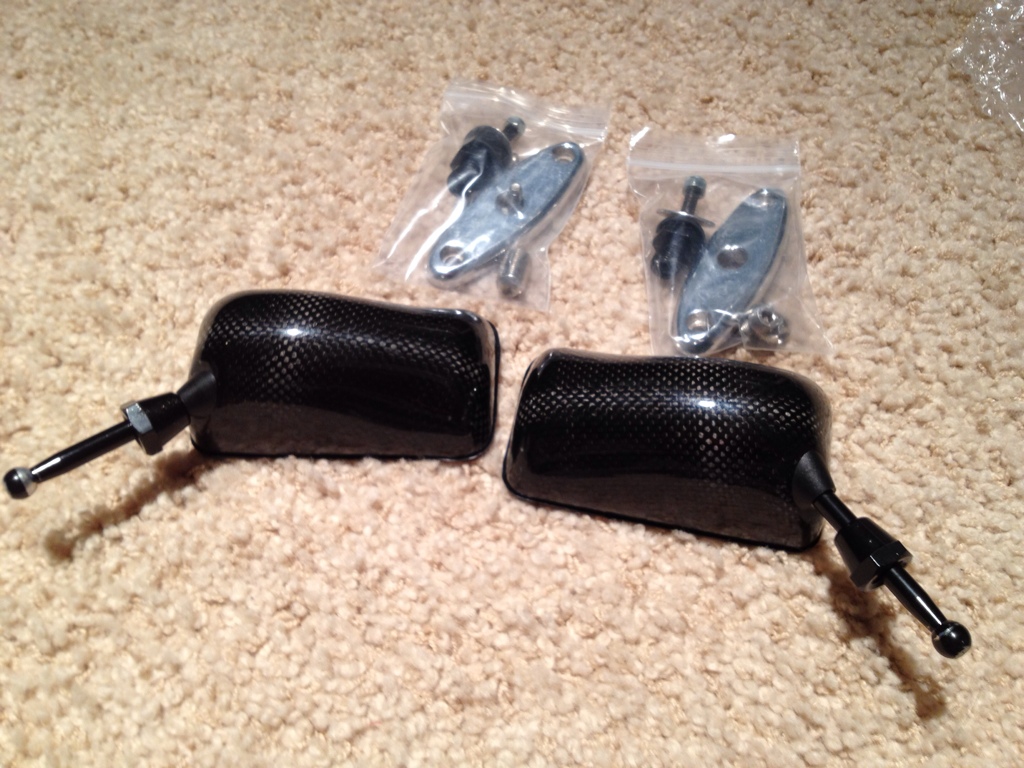 CF mirrors with hardware. Practically new. I have not personally used them. Decided to go another route.