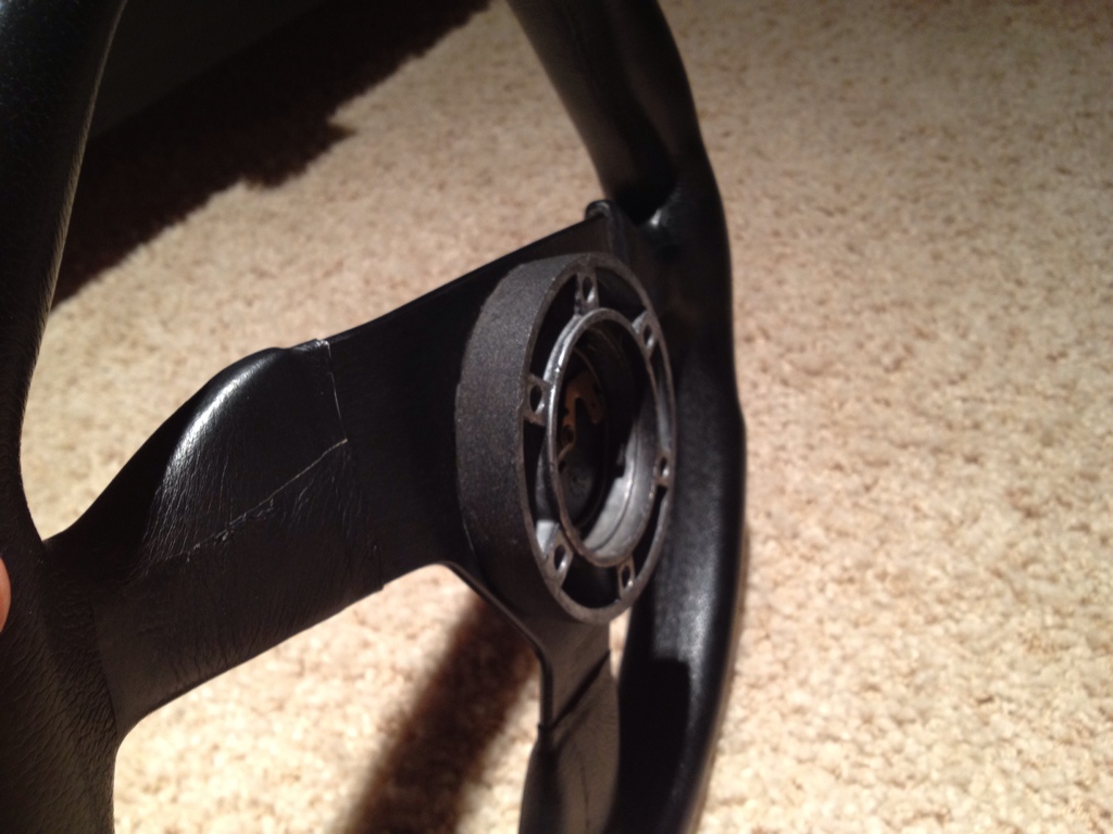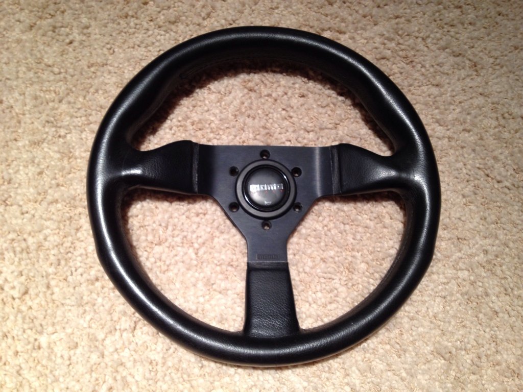 Momo Corse 320mm steering wheel with a small spacer and horn button.
