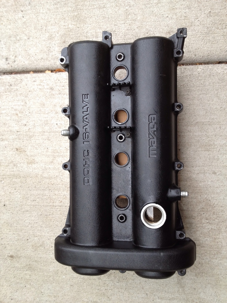 1.6L wrinkle black valve cover with AN catch can fittings.