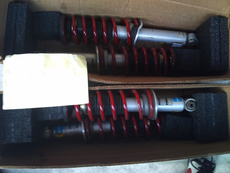Stock springs + bilsteins, approx 7000 miles, no rain or snow ever. Sorry, no top hats included. All bushings, washers, and both top nuts on each shock are included. Will ship at buyer's expense. All reasonable offers will be considered.