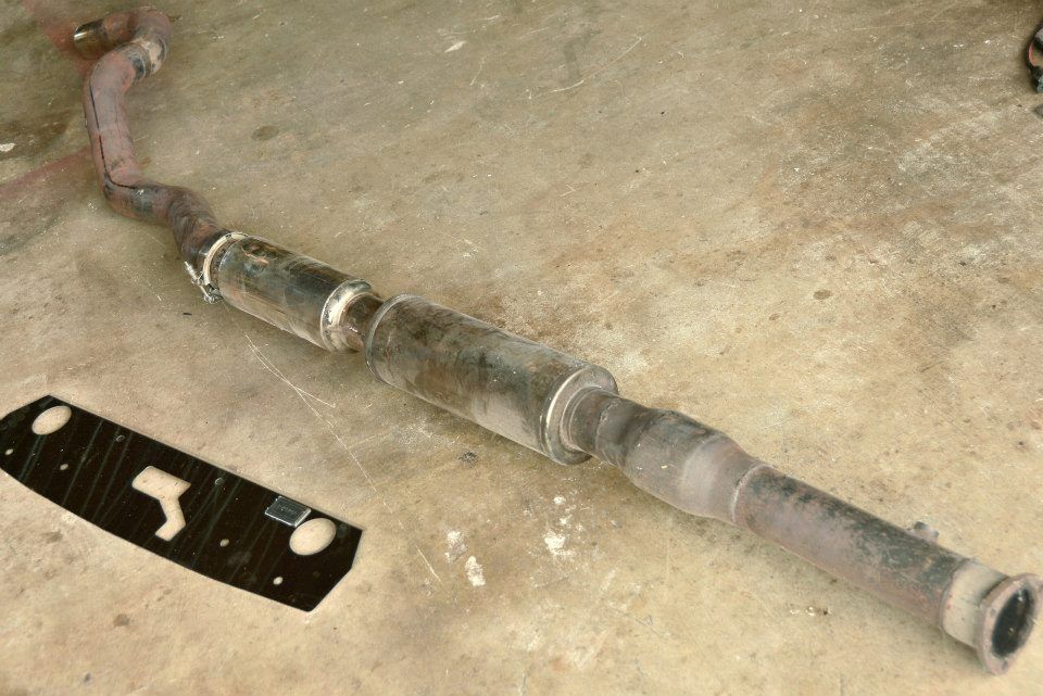 3" exhaust with high flow cat and 2 resonators. Has rust, dents, and no exhaust hangers but it gets the job done. Came off a NA, downpipe back: $old