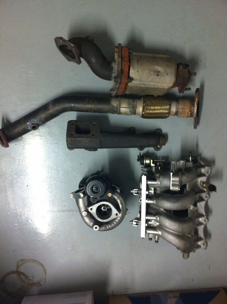 4. 99-00 Flying Miata FMII Link Turbo Kit-CARB Legal (for the 99) -Very rare, originally built by BEGi for FM. This is the only carb legal NB turbo kit made/sold. Includes manifold, good shape GT2650R (not original FM turbo), flange adapters to work with FM piping, DP with pre-cat (essential for the CARB legal part), FM Intercooler, all intercooler piping/couplers, intake reroute, heat shields, oil supply, water lines, NEW FM BOV, New Boost Gauge, New gaskets, etc. In addition to the turbo hardware, this kit also includes the modified intake manifold with 4 extra injectors ports, 4 injectors, dual feed fuel rail, 02 Modifier, Boost control solenoid, LINK Piggy Back ECU and Keypad Tuner. The turbo still needs to be properly clocked as well and the CARB EO plate will be sent to you by BEGi once you send pictures of it installed on your car-$old