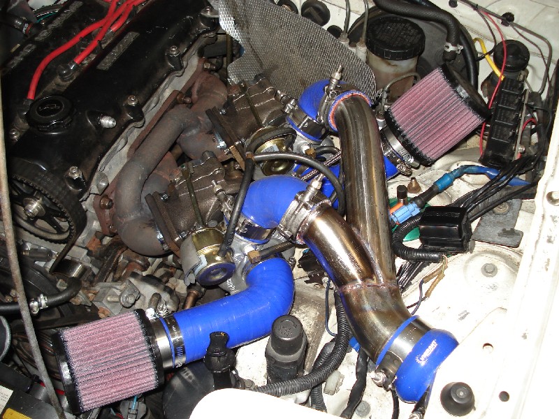 Taking this TT kit in and out of the car everytime I have to build a turbo kit is no fun. It has been sitting in a box in my utility room since I first built Sav's vband kit, I'd rather see it being used on someone's car, I think. In my car I may go with something simple to get to like my BEGI/FM tubular replacement mani might be smarter to run. Or I may go V8 in the miata.