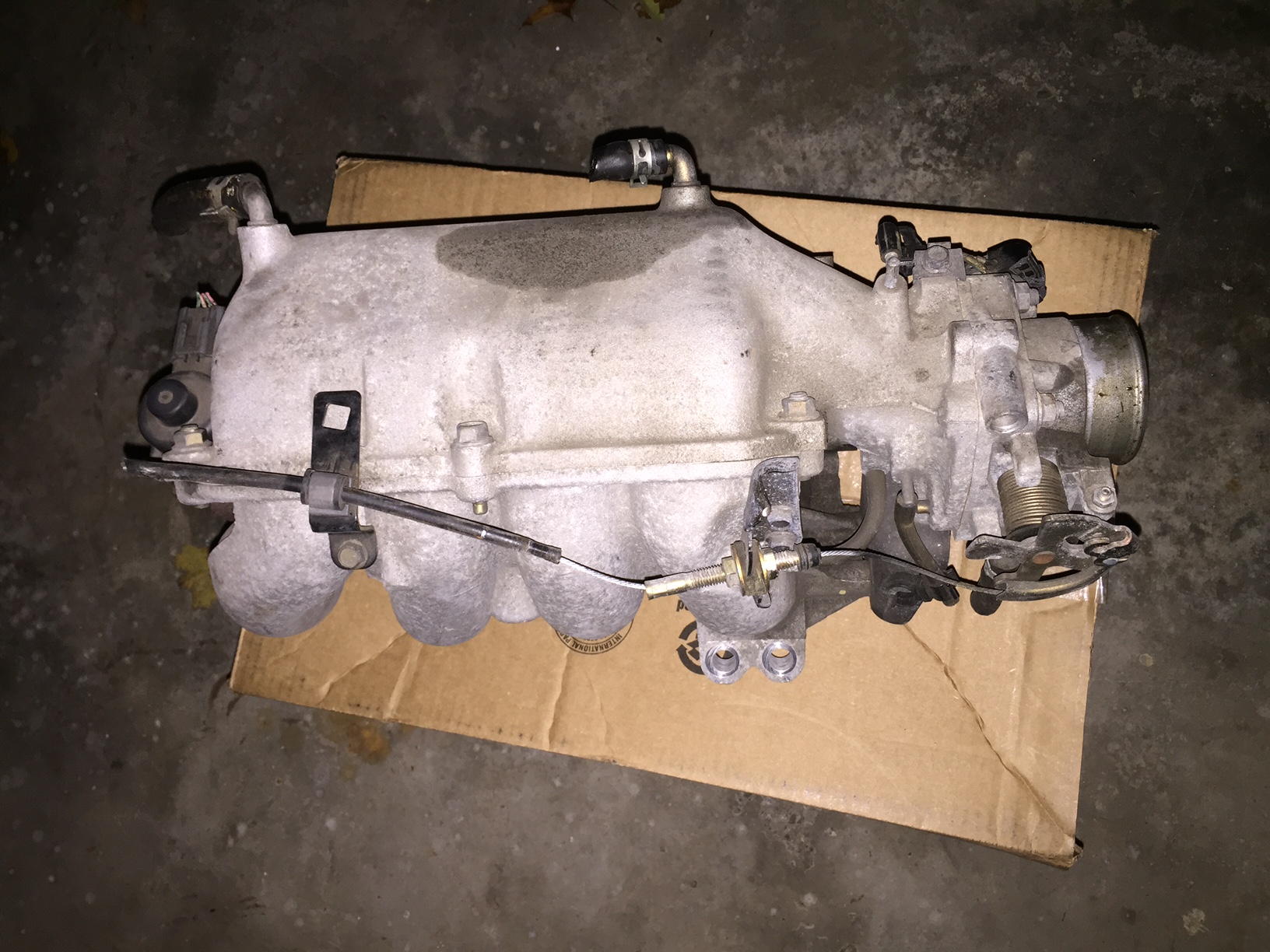 Comes with TB, EGR, and fuel rail. These parts look good to me, but they're strictly bonuses- no guarantees on them.