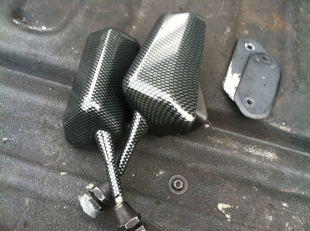 Fake cf mirrors, screw right into the door, one stud broke - 20$ shipped