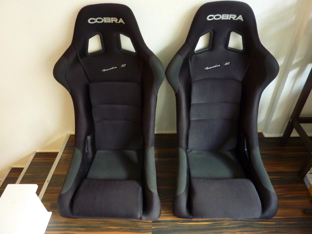 -A pair of COBRA IMOLA S seats: Kevlar, FIA homologation and very comfortable. They fit the miata small cabin really good, super easy to get in and out of but with great shoulder and hip support. They have been used a total of 3 months. They were in factory boxes for 3 years. Manufactured march 2007. Fabric is in 9.5/10 condition.