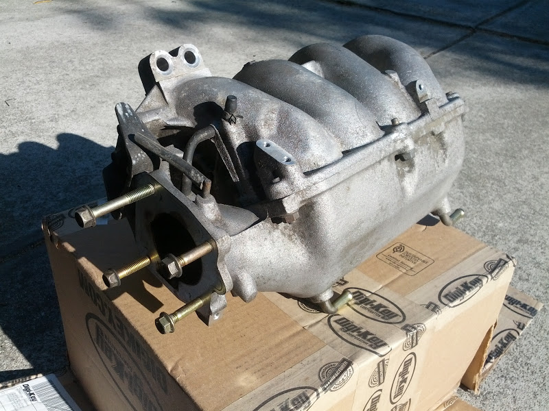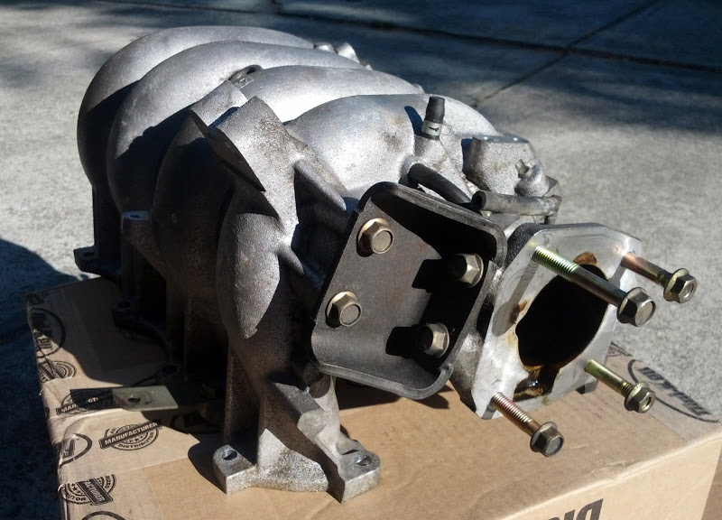 This manifold probably needs no explanation, but just in case: it's a higher flowing intake from a non-US market NB2 Miata. Compatible with EGR, or you can use an OEM EGR blockoff.