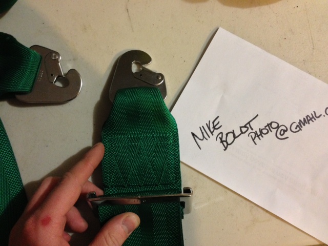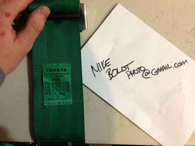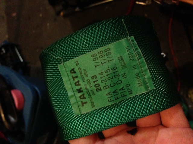 Pair of Authentic 2013 FIA Expiry Takata Harnesses in Green, short length.