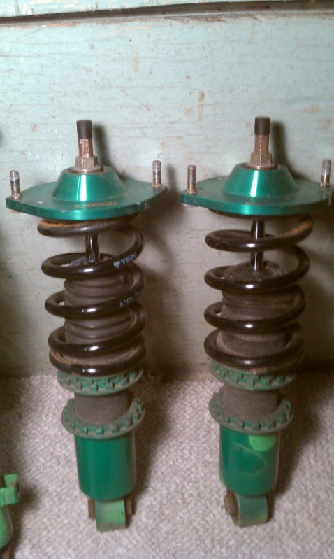 I've got a set of used Tein Flex coilovers for sale. I bought them new a few years ago, still have the receipt. They've got about 20k miles on them. They currently have 9kg short springs up front and 6kg springs in the rear. They're not in the picture but I'll include the original 7kg front springs with the sale. As you can see in the pictures there are some spots of lighter green paint on the shock bodies. This is because I transfered the coilovers from one of my miatas to another and in the process some paint (the factory paint on Teins is very fragile) was scraped off. I did not want them to rust so I sprayed them in those spots with the only green paint I had. Not the prettiest thing in the world but they didn't rust and it is invisible when on the car. There is some light rust on the threads of the adjustment **** and the bottom mounting hole. I'd like to sell these locally, so please don't ask for shipping. I'm willing to drive an hour or so in any direction from nyc if necessary. Asking $750 PM me if interested.