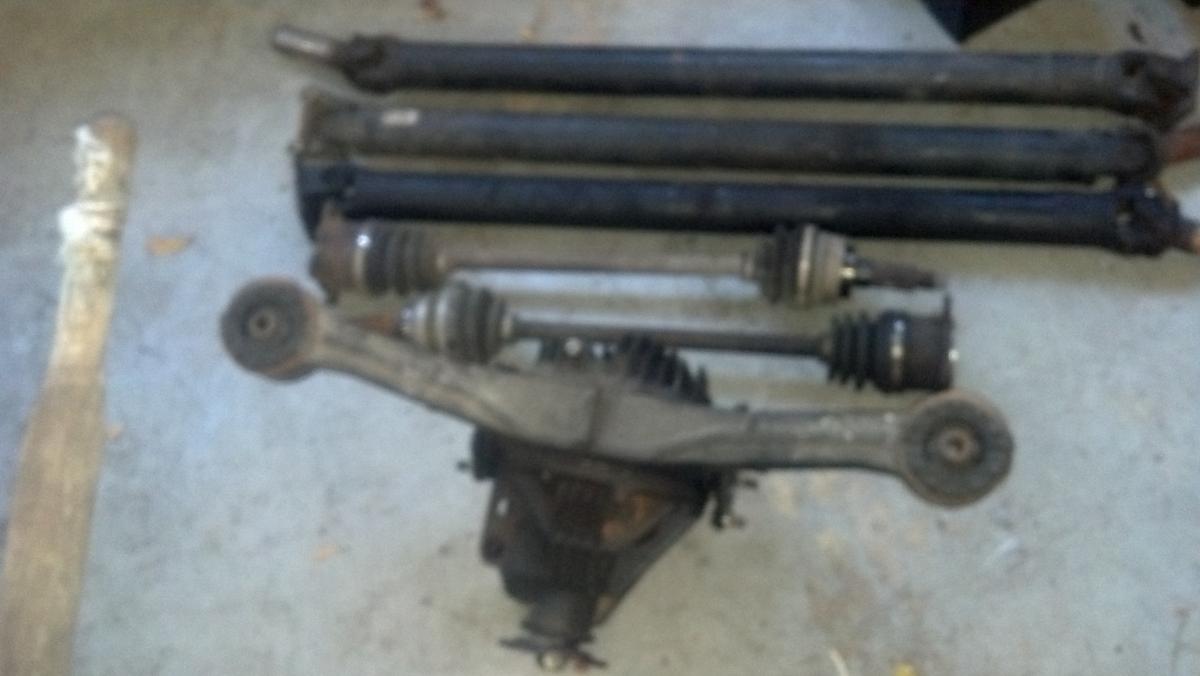 i looked at the axles and one of them was mushroomed on the spindle side so theres two axles, three driveshafts, and one Viscous LSD.