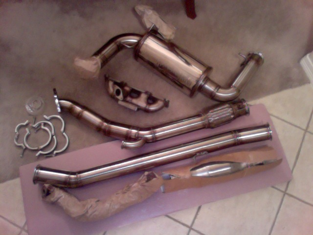 Like the title says. I'm going V8 and I have no use for this. This is for a 1.8 NA with a T3 flange. This will include a log manifold with a 38mm flange, 5-bolt downpipe with flexpipe/bung. There is a catalytic converter and full catback included, with all bands. There is also a dumppipe for the wastegate that is recirculated. This is pretty much a COMPLETE turbo setup. Everything is v-banded south of the turbo flange. This is all BRAND NEW and all done by Abe at AR Tech.