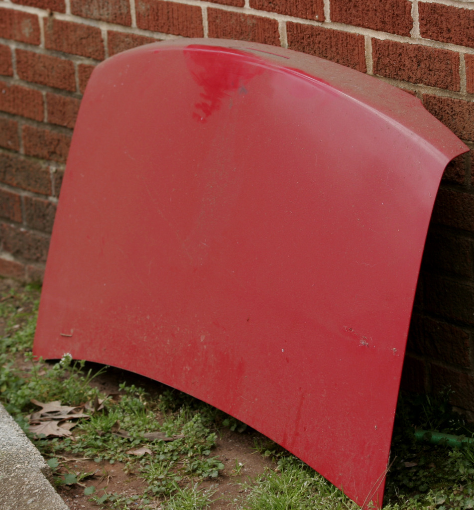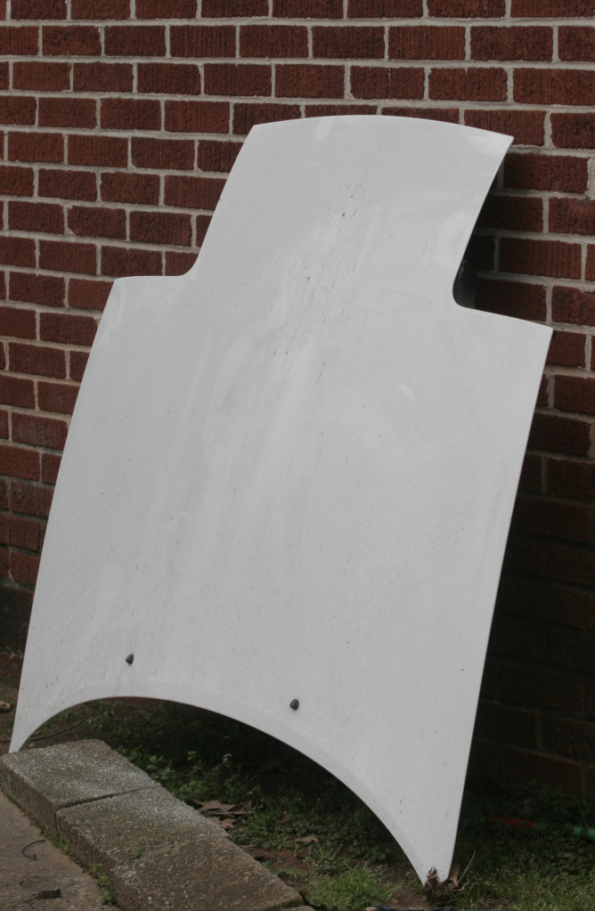 Hood, not perfect but not bad either. It's strait but has some slight hail dammed