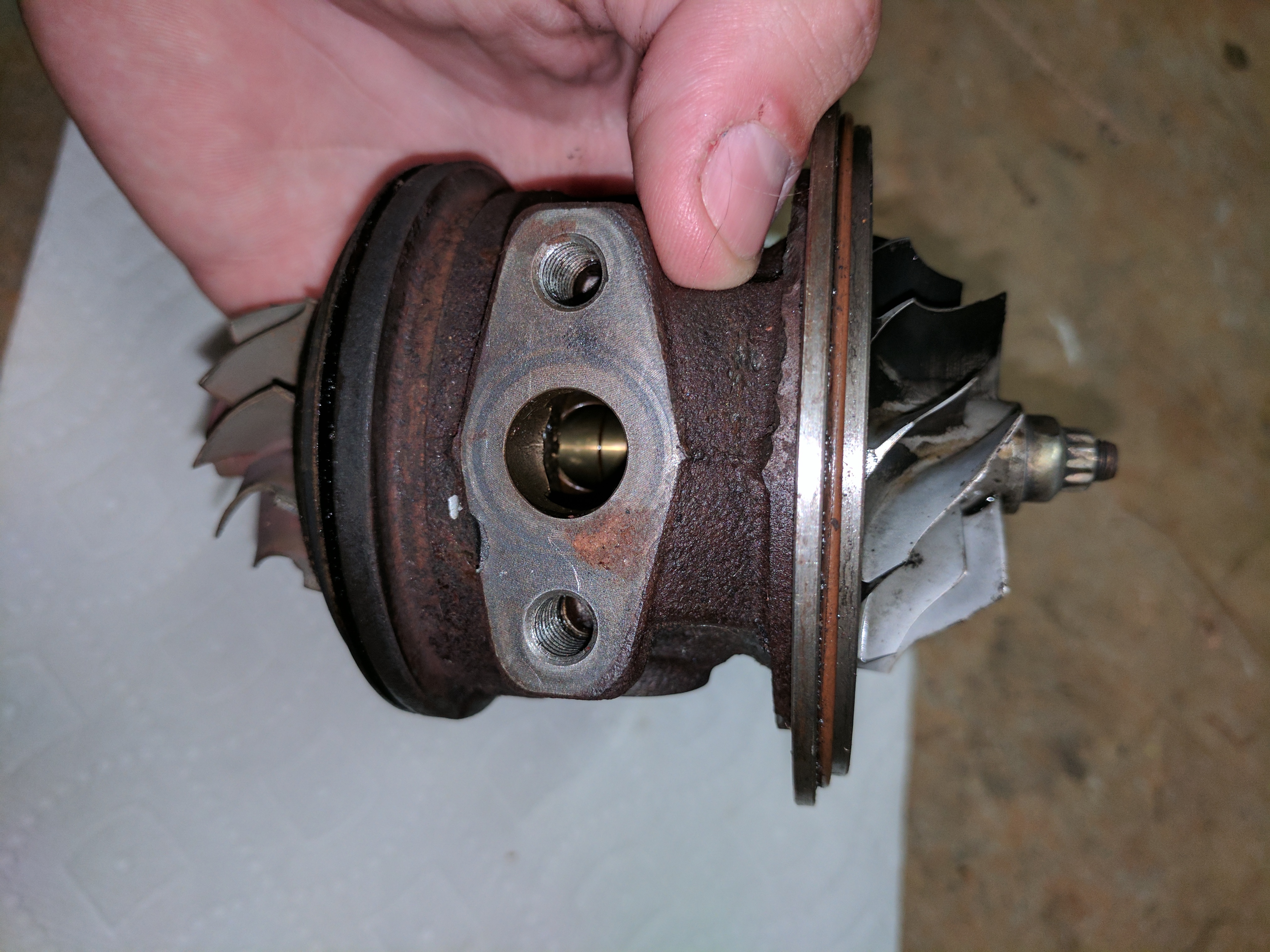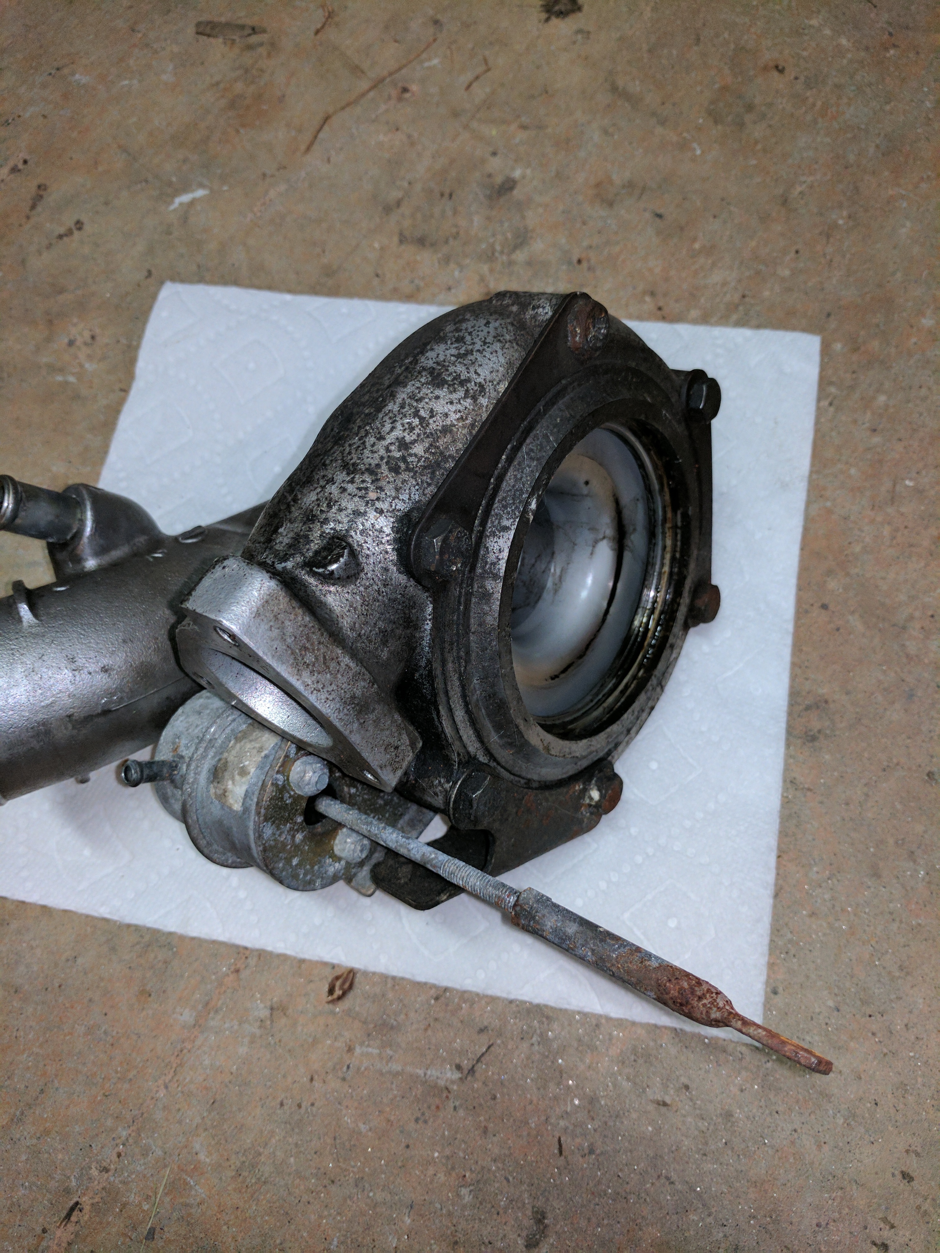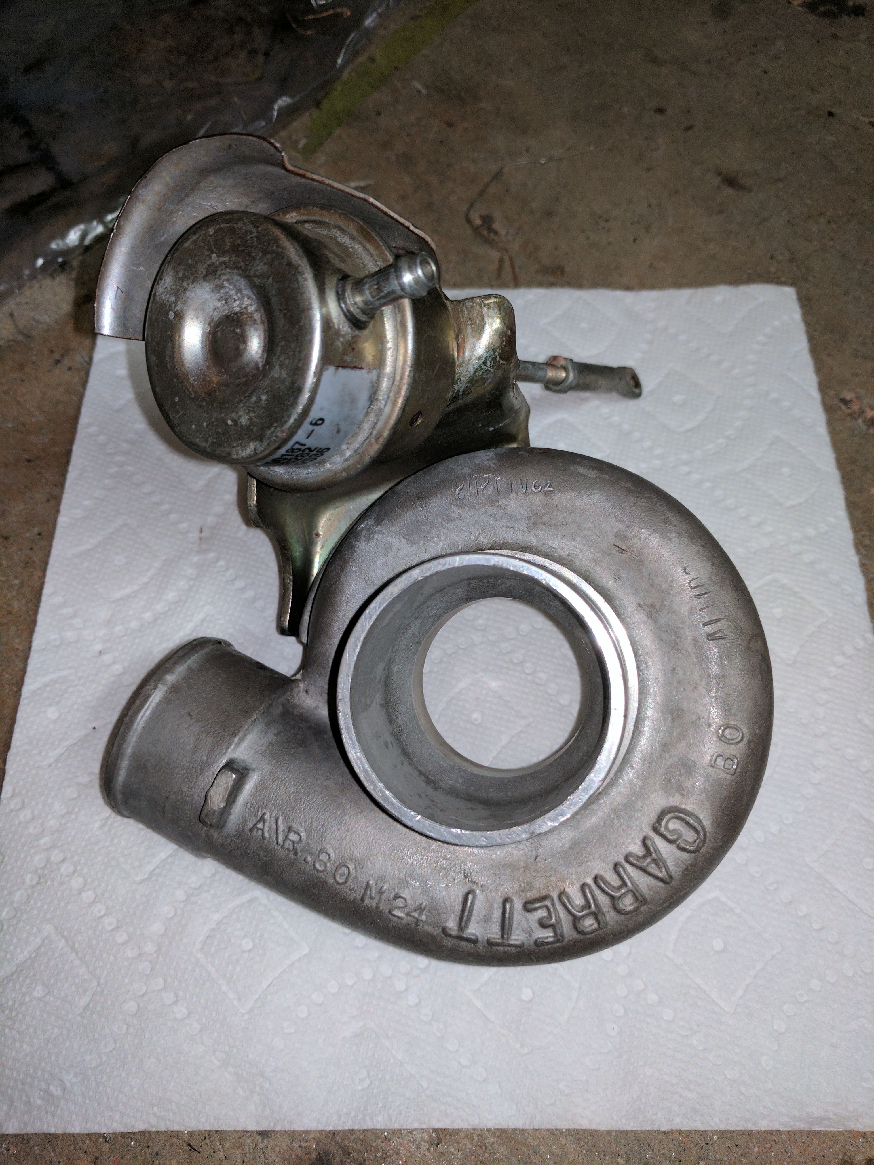 2560r - This turbo was meant for my 90. I planned to use the 2554r's exhaust housing since I am pretty sure it wouldn't stick when modified to fit a miata. This turbo came off of a later Nissan Silvia and is not as clean as the 54, but it has no shaft play and is it good working order. The Nissan turbos used bolt on flanges on the compressor housing, so you'd need a little more than the usual relocated actuator to get this on a miata. Speaking of which, the actuator is junk on this one too. Currently, the housings are removed. Price is $250.