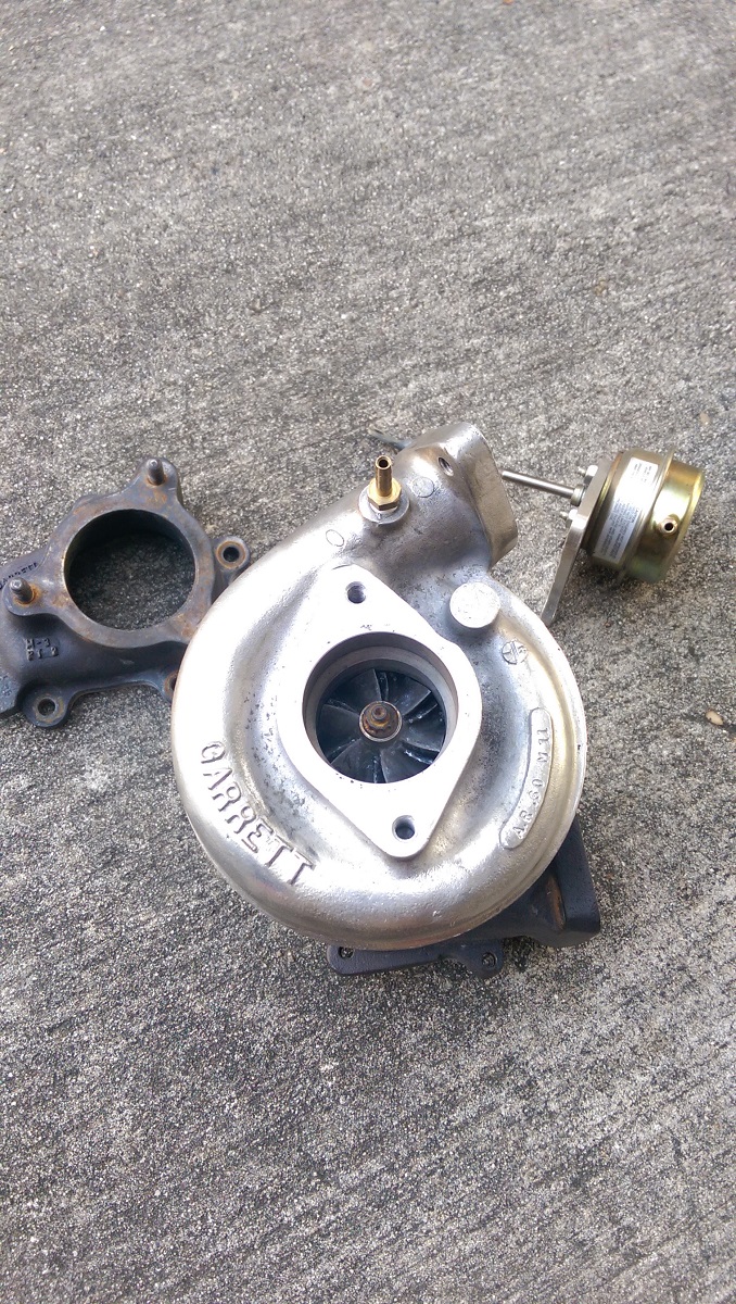 For those who don't know, this is very similar to the turbo Braineack and many others use, with the exception of a slightly bigger compressor wheel. The same quick-spooling turbine wheel and exhaust housing is used. Includes oil drain and supply fittings, internal wastegate housing, and internal wastegate with bracket. Note that all these parts are fully compatible with each other, I have just simply taken off the IWG parts because I was going to run EWG. Asking $120 shipped.