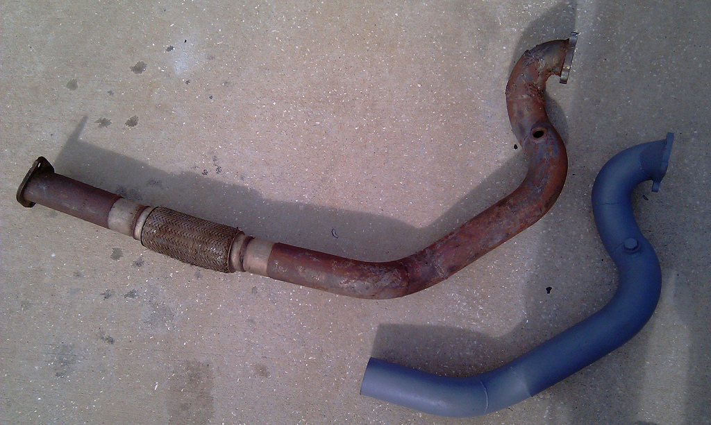 [2] Racing Mazda 2.5-inch mild steel downpipe with flex section and flange to fit [1] above - $100