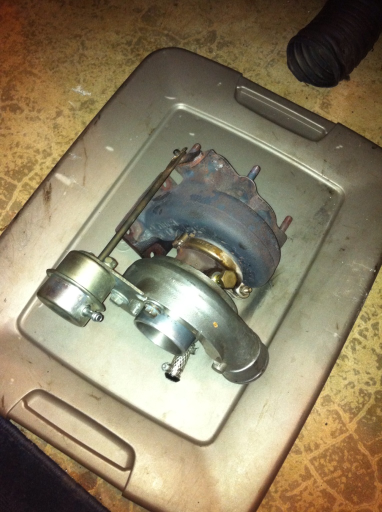 Greddy TD-04 turbo-no leaks, very slight axial play (normal), no radial play. Worthless greddy wastegate was replaced with good one, and has given me very steady boost with JP's signal source. No leaks, oil shown on clamp is from removing the feed line. $225 shipped obo