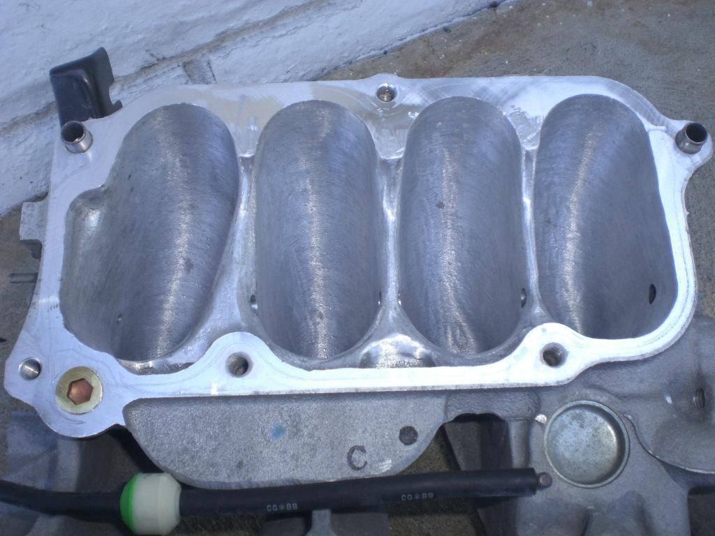I spent about 10 hours gutting, porting and polishing the upper and lower portions of this intake for a 1.8 build that never happened.