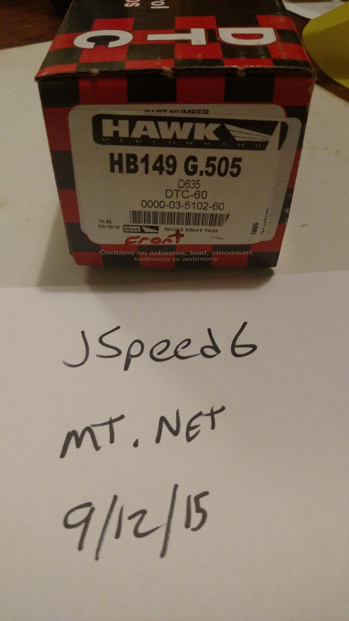 Selling a front set of 1.8 Hawk DTC60 pads, brand new. I decided to go with the DTC50 compound, so I don't need these.