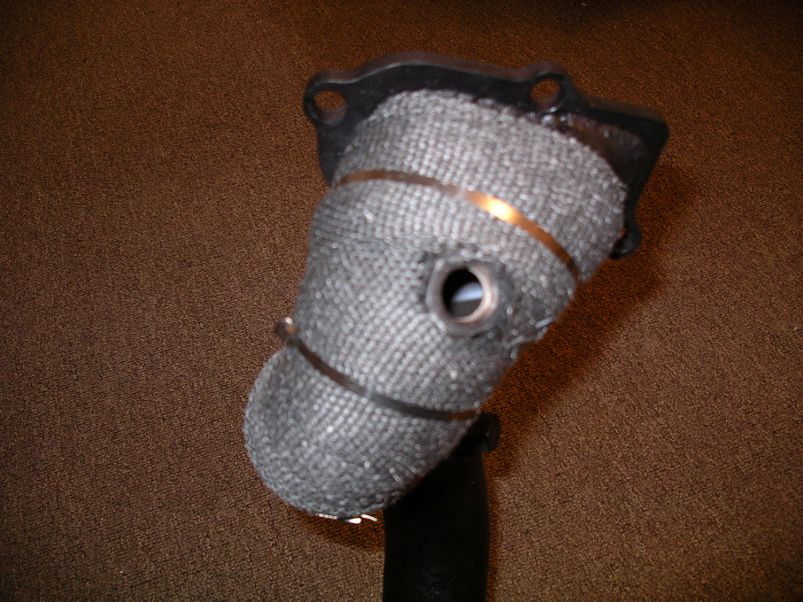 Racing Mazda 2.5 flex downpipe for the Greddy turbo. This one had a tiny crack up toward the flange by the turbo, so I had it welded (See attached pics). I was planning on using this DP still, but wanted to clean up my engine bay a bit, so I painted it with some high temp flat black. I also started wrapping the pipe with some exhaust wrap I got from Summit racing. I'm not sure how the paint will hold up, but its rated for 1500deg IIRC. These DP's sell for $270 new and are pretty hard to get from Ric. SALE PENDING.