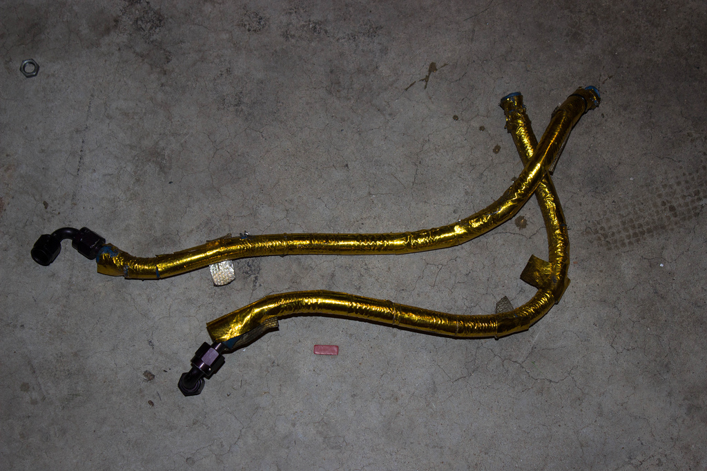 - -6AN pushlock hoses for collant (reflective gold heat wrapped)