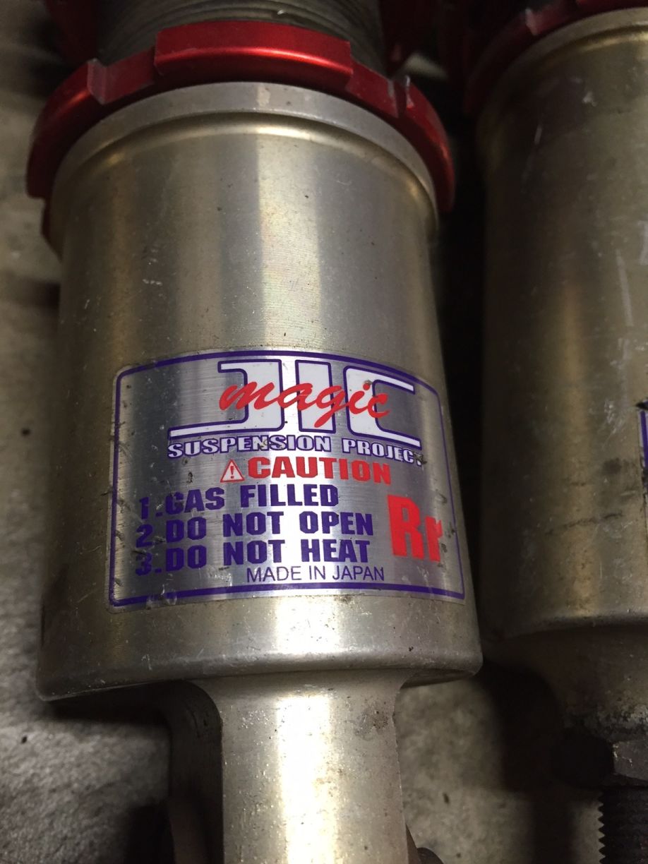 $790 OBO - JIC Magic FLT-A2 coilovers - 560/450 spring rates. rebound and compression adjustable. About 10k miles. They drive great on the streets and the track. No leaks or problems with them. These were $1900 MSRP new. Selling because I put Xidas on the car.